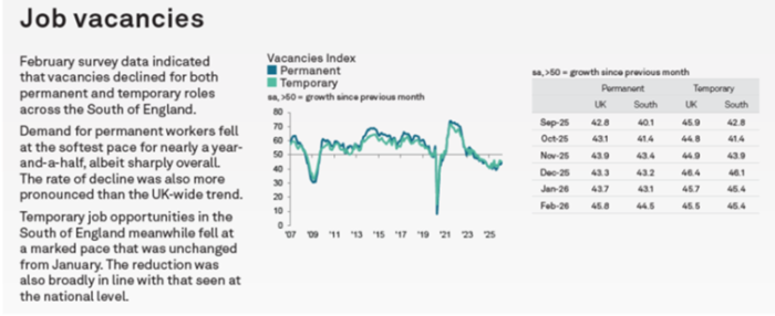 “February’s data highlights how South of England businesses are taking a more cautious stance on hiring, with the sharpest fall in permanent placements of any English region. What’s important, however, is that the pace of contraction eased to its slowest for nearly two-and-a-half years – a welcome sign that we may be approaching a turning point as businesses reassess workforce strategies.